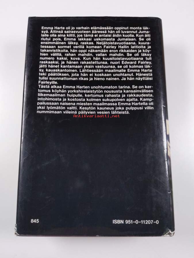 Hyvä. Hieman kulumaa reunoilla ja kulmissa, tyhjä etulehti irrotettu, selkämyksessä vinoutta. Kansipaperin kunto: joitain repeämiä/kulumaa