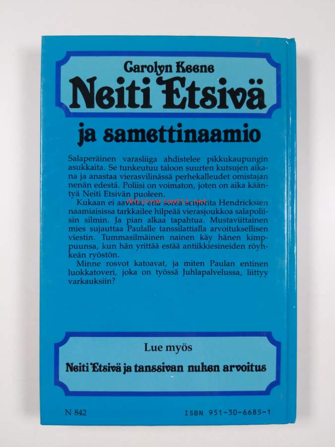 Muu(t) tekijä(t): Pirkko Talvio-JaatinenSarja: Neiti Etsivä 51Alkuteos: The clue of the velvet mask