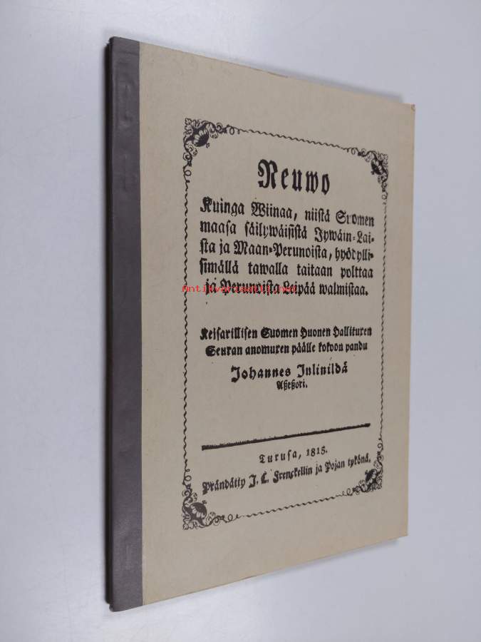 Neuvo Kuinka Viinaa, niistä Suomen maasa säilyväisistä Jyväin - Laista ja Maan - Perunoista, hyödyllisimmällä tavalla taitaan polttaa ja Perunoista leipää valmist...