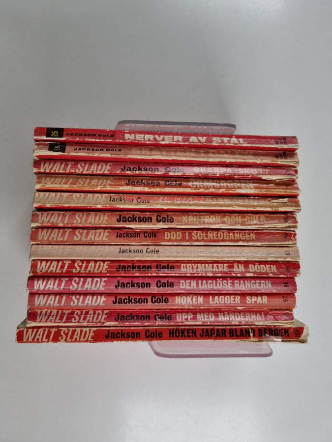Koko nimi: En ny Walt Slade-setti: Nerver av ståhl (nro 25); Skatten i dalen (nro 35); Skarpa skott (nro 61); Ormgropen (nro 71); Den maskerade ryktaren (nro 74); Krutrök och guld (nro 85); Död i solnedgången (nro 86); Det brinner i El Paso (nro 87); Grymmare än döden (nro 93); Den laglöse rangern (nro 96); Höken lägger spår (nro 97); Upp med händerna! (nro 115); Höken jagar bland bergen (nro 165)Merkinnät: omistajamerkintä