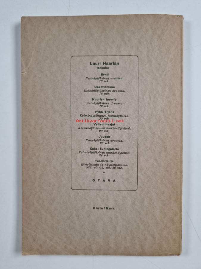 Tyydyttävä. Tarkempi kuntoluokka: K2+ ; Pienoista repeämää reunoilla ja kulmissa, selkämyksessä hieman vinoutta, muutamalla sivulla lyijykynämerkintöjä