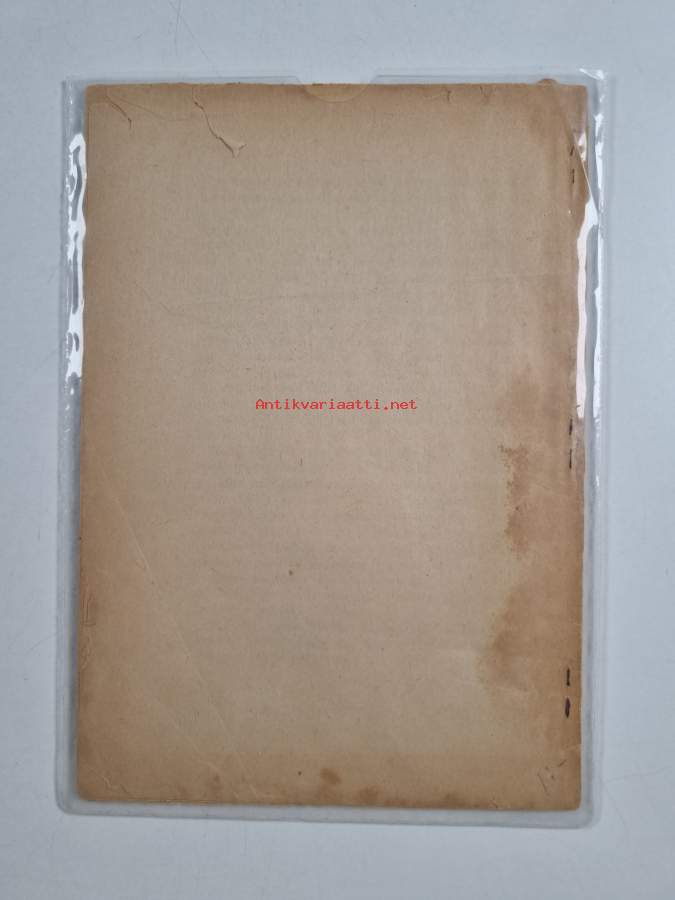 Tyydyttävä. Tarkempi kuntoluokka: K2- ; Jonkin verran repeämää reunoilla ja kulmissa, selkämyksessä aavistus vinoutta. hieman läikkää kansissa ja parilla sivulla