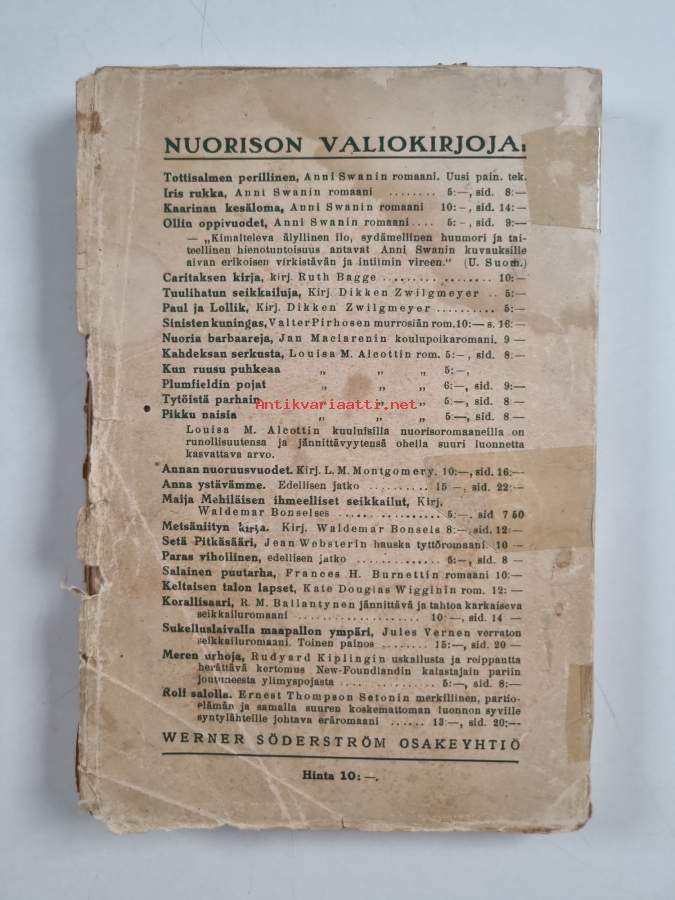 Huonokuntoinen (lukukelpoinen). Tarkempi kuntoluokka: K1+ ; Jonkin verran repeämää kansissa, selkämyksessä aavistus vinoutta. etukantta ja selkämystä teipattu (etukansi irti)