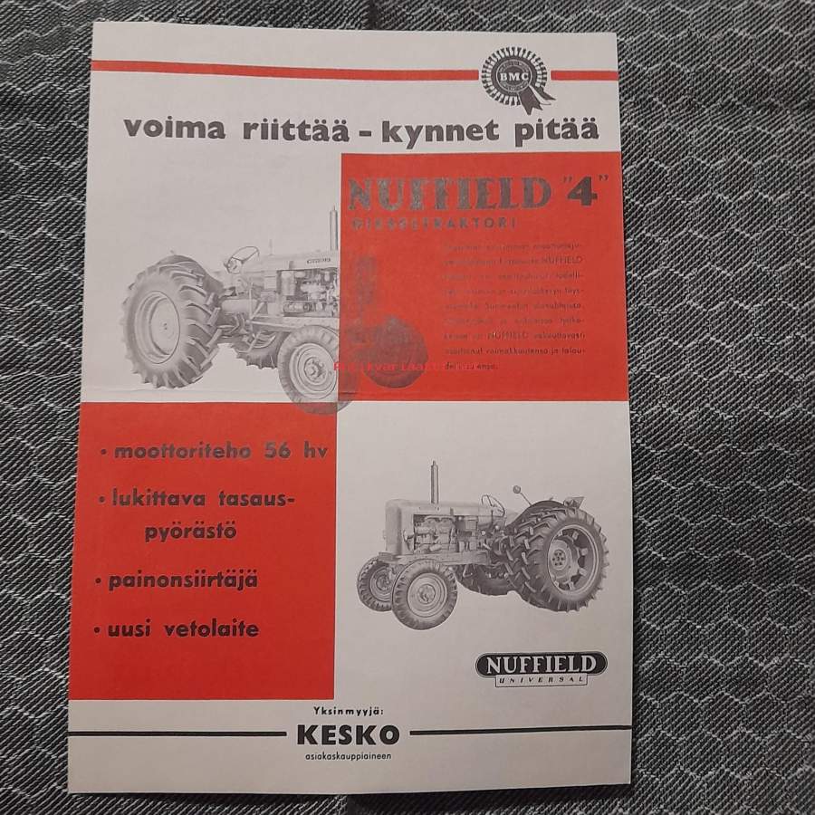 Nuffield Universal DM 4 dieseltraktor, dieseltraktori -myyntiesite, ruotsinkielinen / tractor sales brochure, in swedish