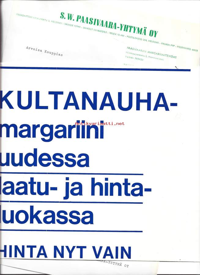 KULTANAUHA margariini - mainos ja liikekirja 1965