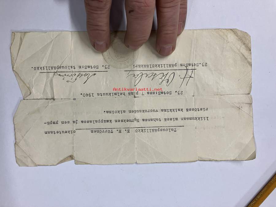 Talouspäällikkö E.H. Törrönen oikeiutetaan liikkumaan Nurmeksen kauppalassa... 23. SotaSairaala, 7.2.1940, allekrijoitus päällikkölääkäri H. Oksala -asiakirja