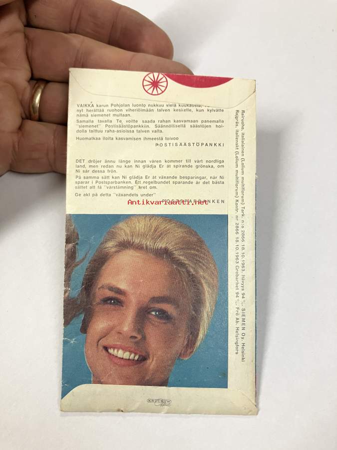 Postipankki - keväinen tervehdys - Rairuohon siemenin (Lolium Multiflorum) - avaamaton pussi, pakattu vuonna 1963