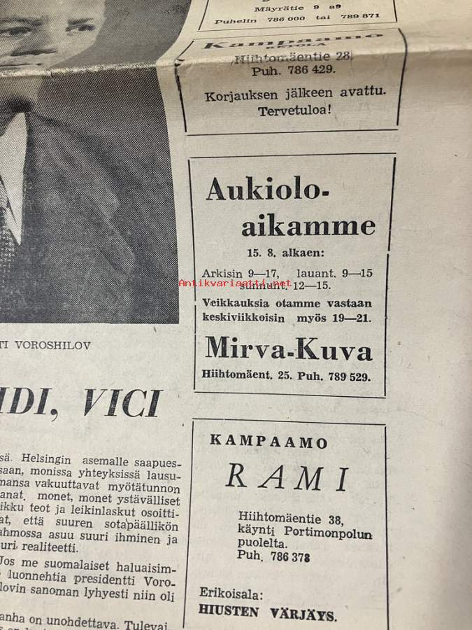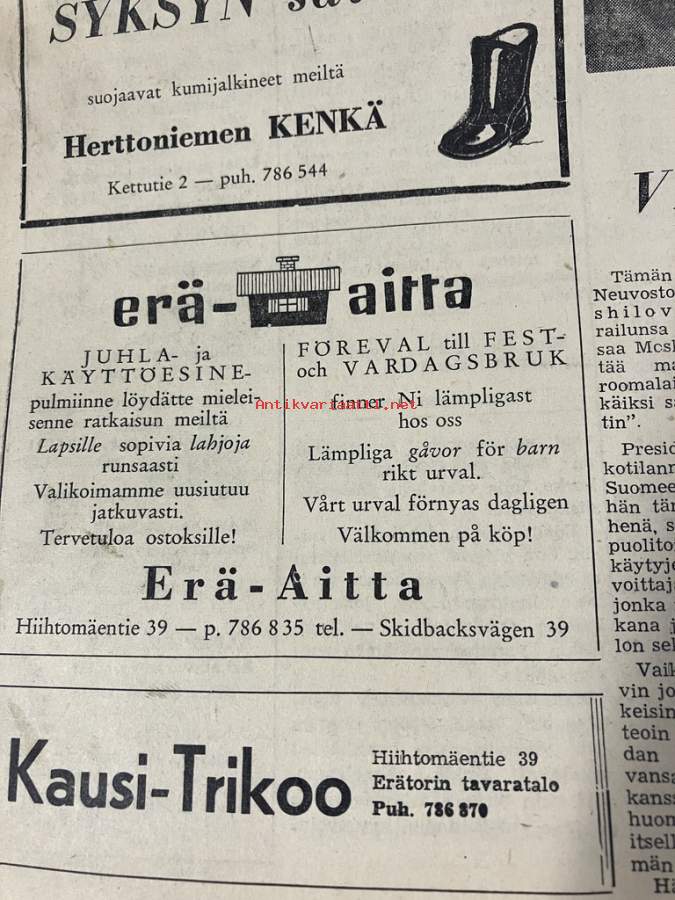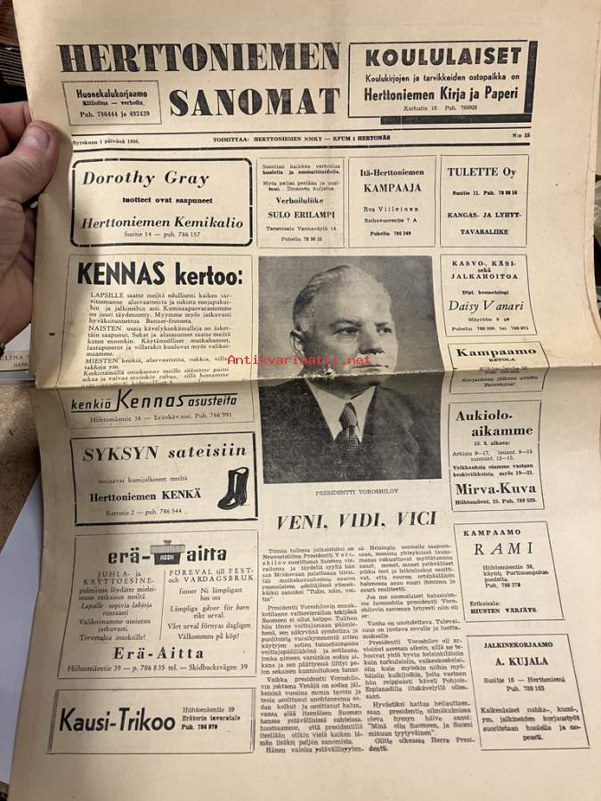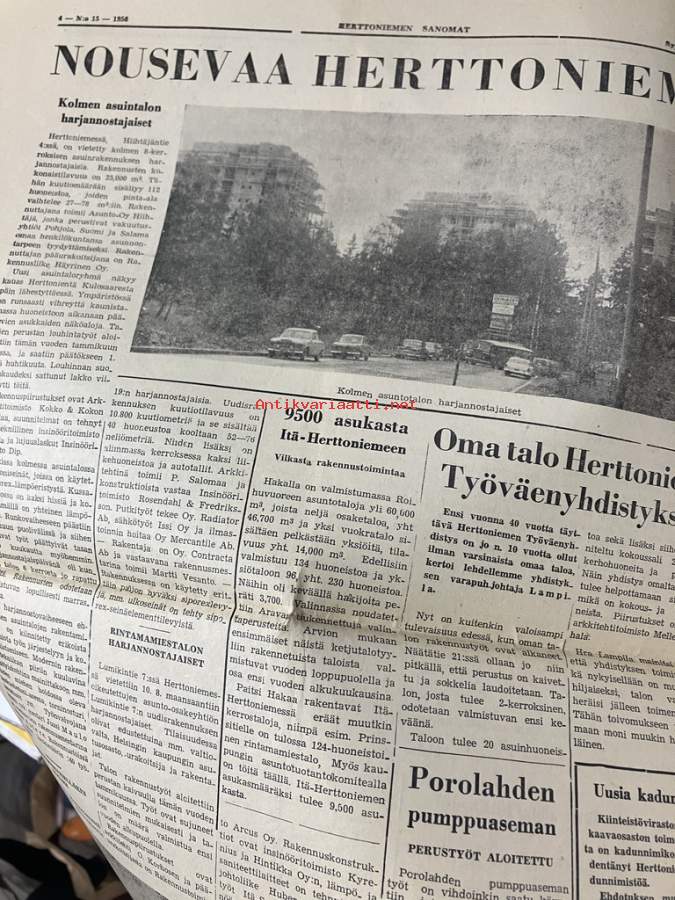 Herttoniemen Sanomat 10.1.1955 , sanomalehden nimiotsikko leike / sanomalehtien ilmoituskeskus