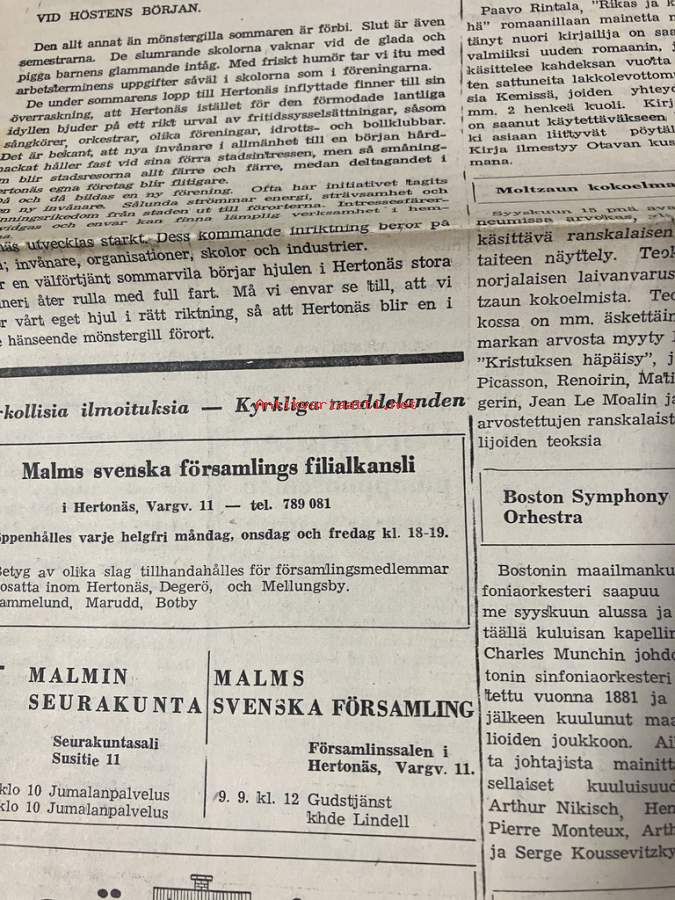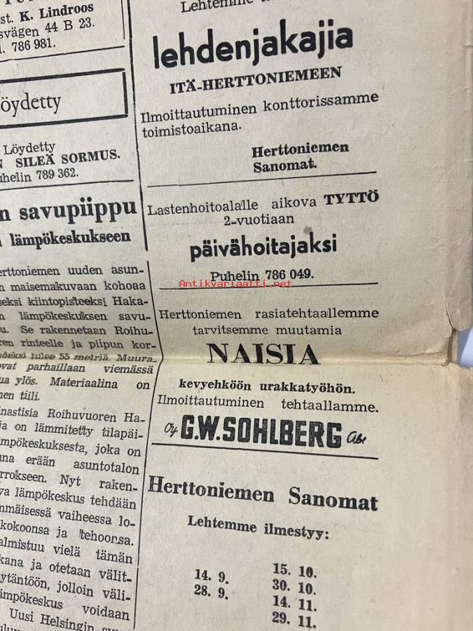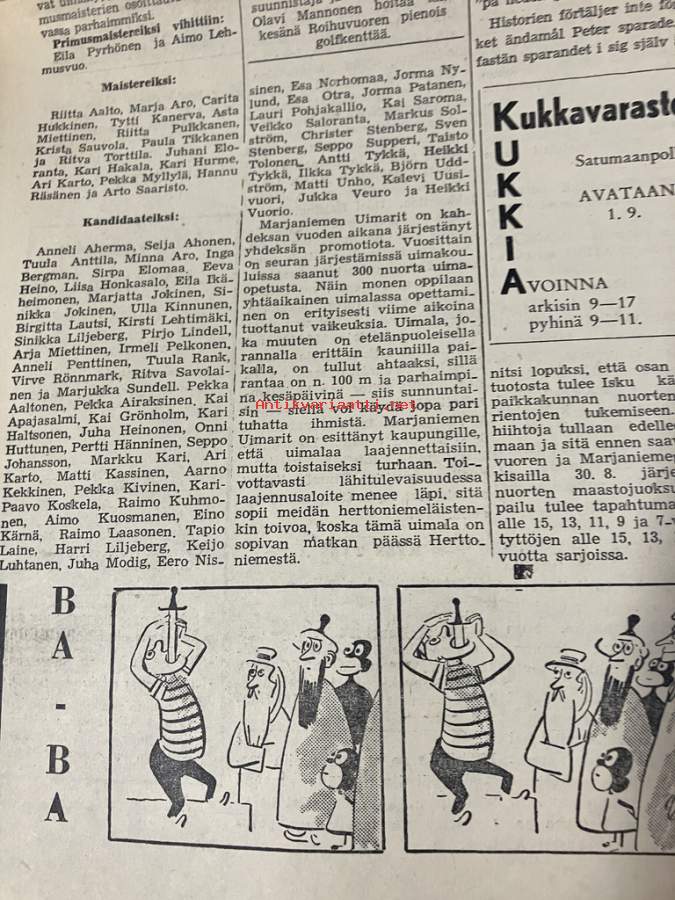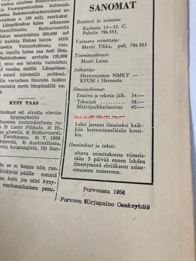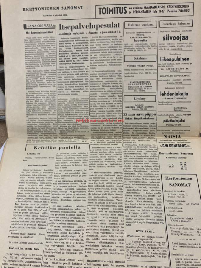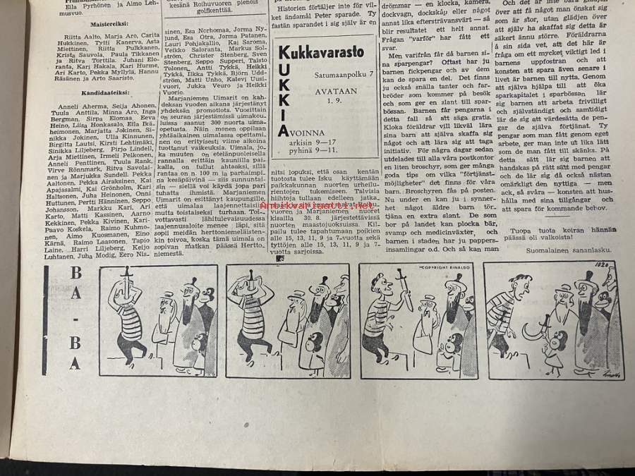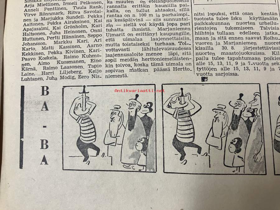 Herttoniemen Sanomat 1.9.1956 - Herttoniemi NMKY:n toimittama paikallislehti, huomaa sarjakuva