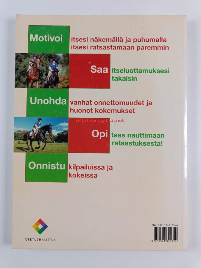 Muu(t) tekijä(t): Terhi LaurilaMerkinnät: omistajamerkintäAlkuteos: Simple steps to riding successAsiasanat: psykologia, koulutus, positiivisuus, ratsastus, harjoittelu, hevonen, kouluratsastus, esteratsastus, motivointi, NLP, toiminnan psykologia, ratsuhevoset