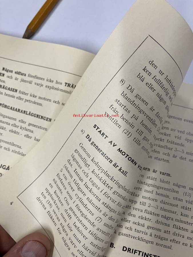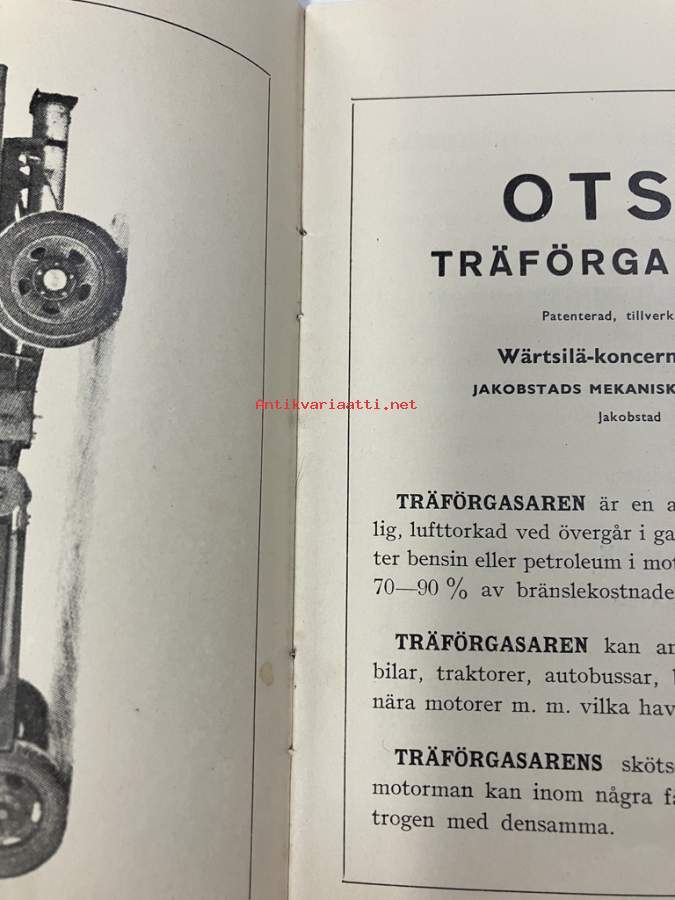 Otso Träförgasaren Wärtsilä-koncernen A/B skötsel- och instruktionsbok -puukaasutin käyttö- ja hoito-ohjekirja ruotsiksi