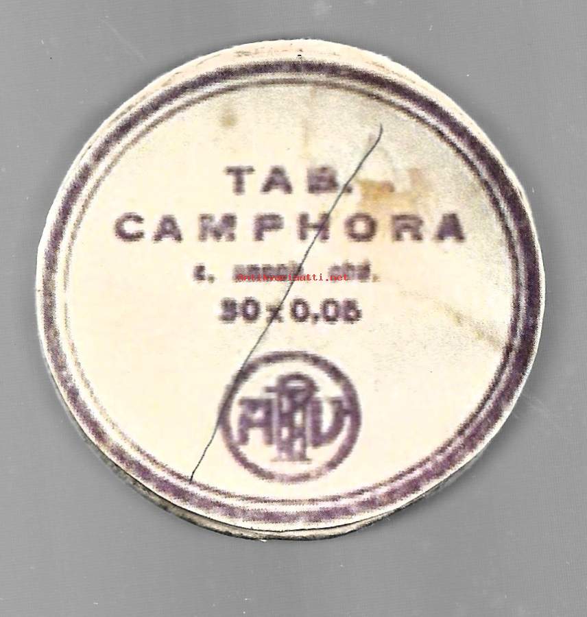 Tab Camphora - tyhjä pilleripurkki pahvia 60x25 mm - lääkepakkaus apteekki
