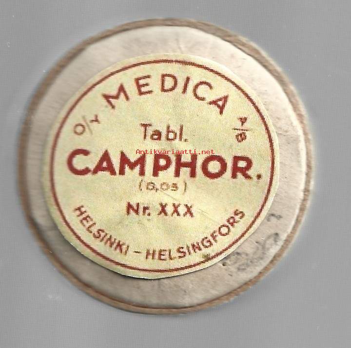 Tabl Camphor - tyhjä pilleripurkki pahvia 50x20 mm - lääkepakkaus apteekki