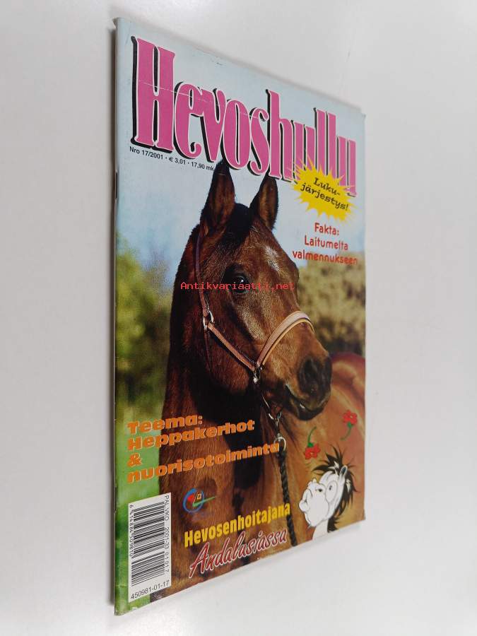 hevoshullu nr 17 2001.fakta laitumelta valmennukseen vakitan tarjous helposti paketti. ..S ja M KOKO 19x36 x60 cm paino 35kg POSTIMAKSU 5e.