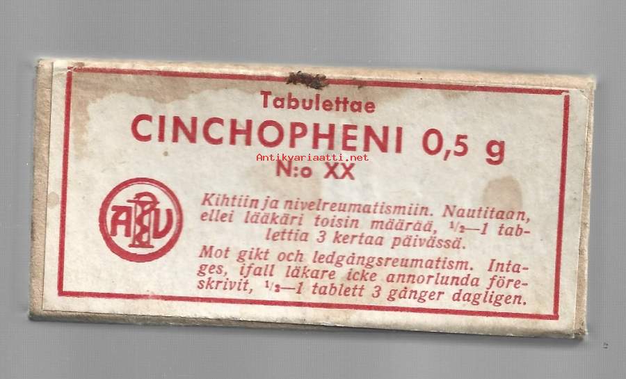 Runeberginkadun Apteekki Cinchopheni 0,5 - tyhjä laatikko pahvia 80x40x20 mm - lääkepakkaus apteekki