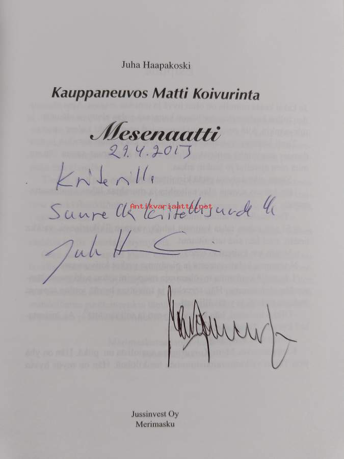 Kauppaneuvos Matti Koivurinta : mesenaatti (signeerattu, tekijän omiste)