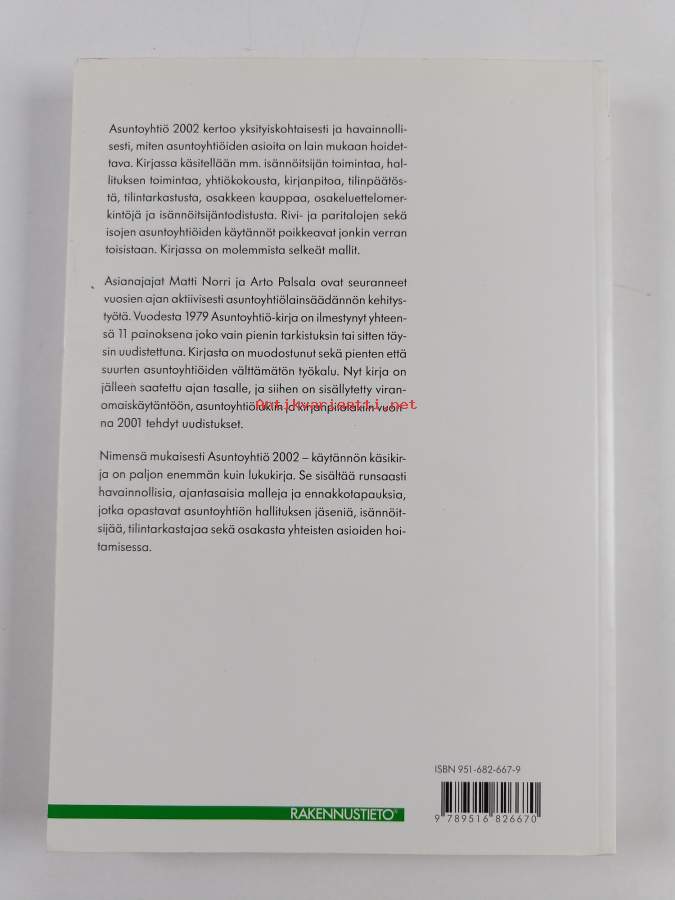 Muu(t) tekijä(t): Arto PalsalaSarja: Käytännön käsikirjaAsiasanat: asunto-osakeyhtiöt, osakeyhtiöt, yhtiöoikeus
