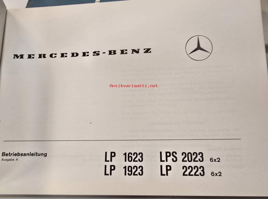 Mercedes benz LP 1623, LP 1923, LPS 2023 JA LP 2223 kuorma-auton käyttöohjekirja.