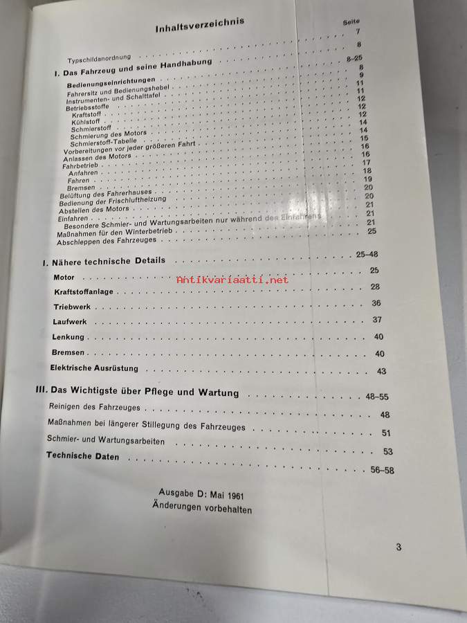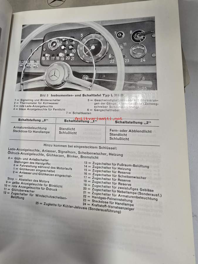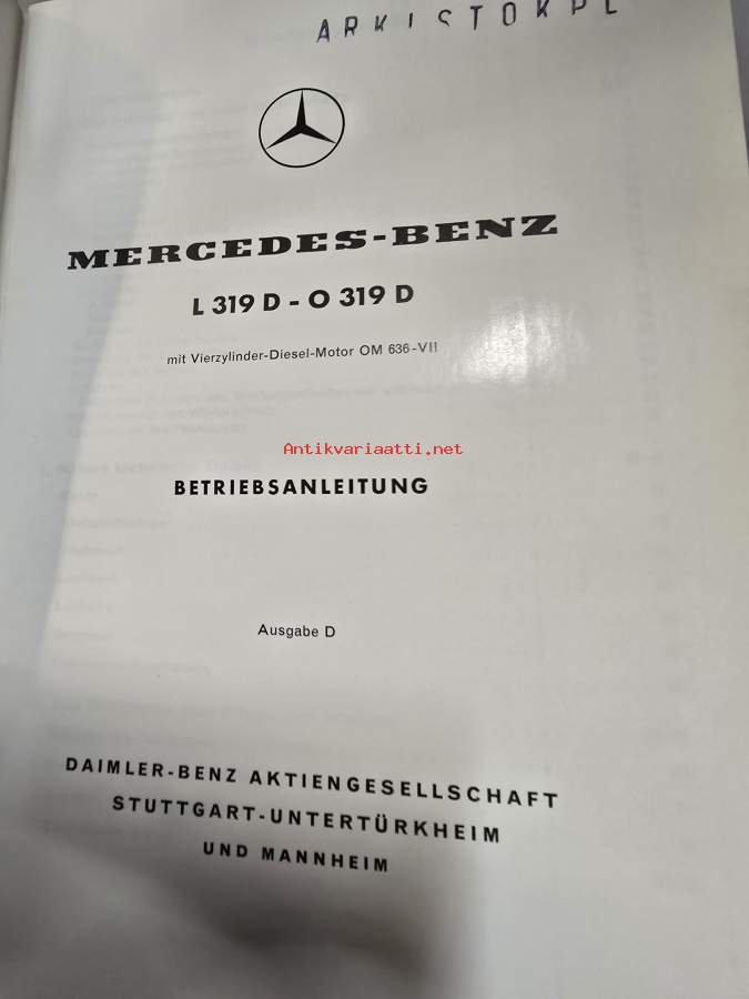 Mercedes benz L/0 319 D kuorma-auton käyttöohjekirja. 1961