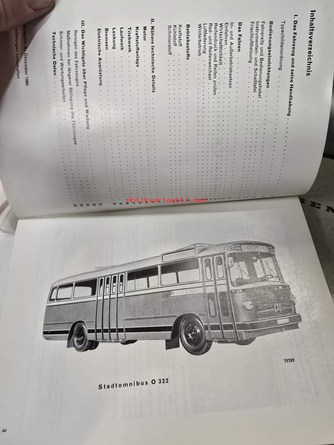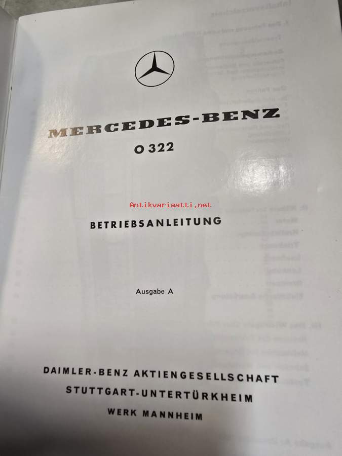 Mercedes benz O 322 linja-auton käyttöohjekirja. 1960