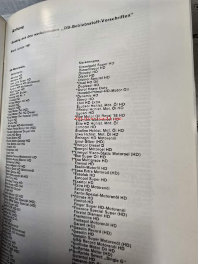 Mercedes-Benz Unimog Motor OM Modell 602 Service, Moottorin varaosakuvasto