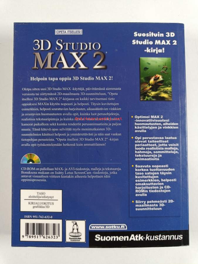Muu(t) tekijä(t): Tauno VehanenMerkinnät: omistajamerkintä (tarra)Alkuteos: 3D Studio Max 2 FundamentalsAsiasanat: kuvankäsittely, tietokonegrafiikka, kolmiulotteisuus, animaatio, tietokoneohjelmat, 3D Studio MAX