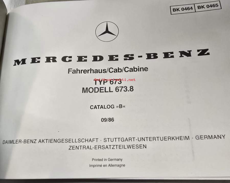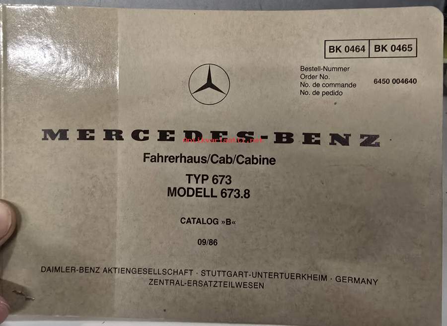 Mercedes benz typ 673 hytin varaosa luettelo. 1986