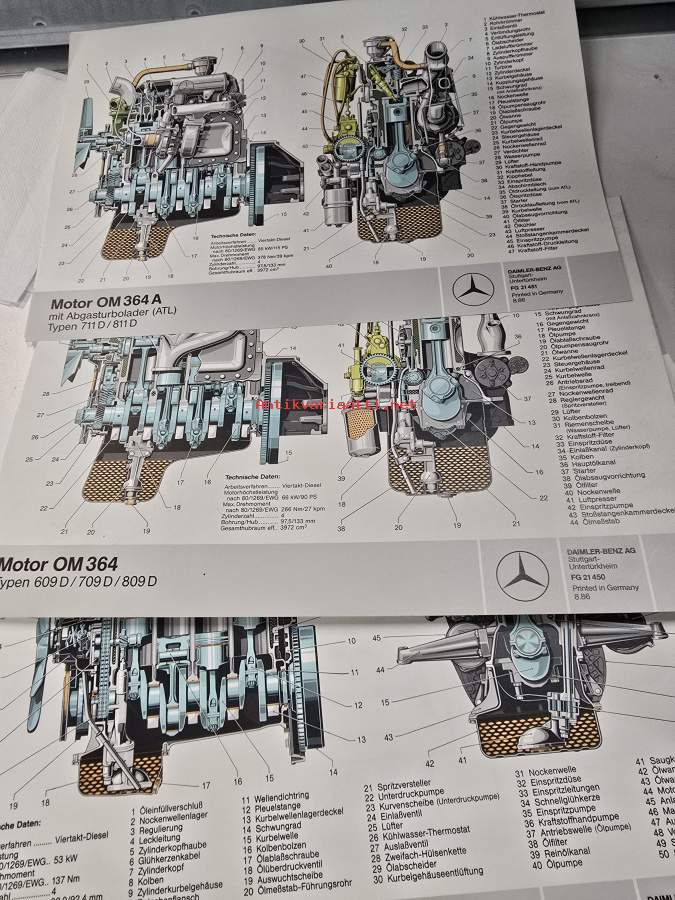 Mercedes benz motor OM 364 A varaosa kuvat. 18 kpl. 8.86