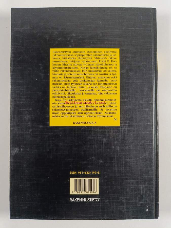 Sarja: Käytännön käsikirjaAsiasanat: rakentaminen, lainsäädäntö, talonrakennus, valvonta, urakat, urakointi