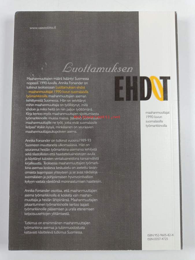 Luottamuksen ehdot maahanmuuttajat 1990-luvun suomalaisilla työmarkkinoilla