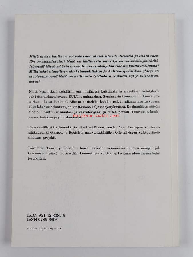 Luova ympäristö - luova ihminen : raportti ensimmäisestä KULTI-seminaarista, Oulu 22.-23.11.1990