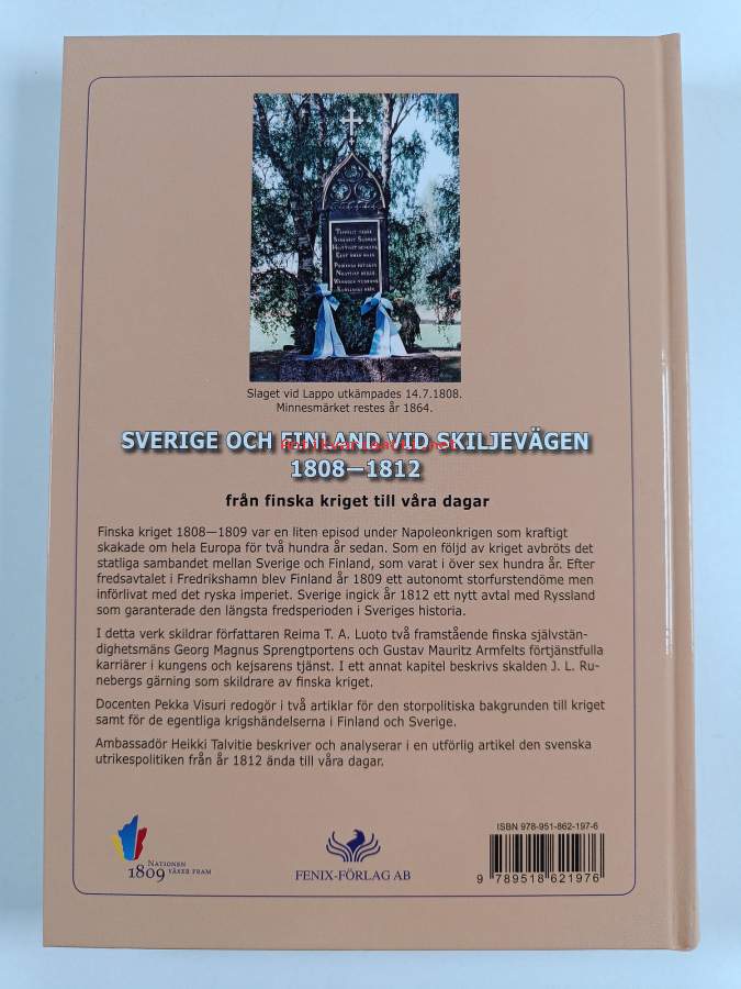 Muu(t) tekijä(t): Marianne Saanila, Pekka Visuri ym.Alkuteos: Suomen sota 1808-1809 : taustat, tapahtumat, muistomerkitAsiasanat: sodat, sotahistoria, poliittinen historia, taistelut, muistomerkit, Suomen sota, strider, krig, politisk historia, krigshistoria, minnesmärken