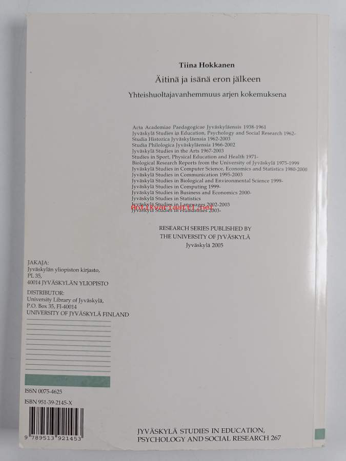 Sarja: Jyväskylä studies in education, psychology and social research 267Asiasanat: äitiys, avioero, lapset, lapsen huolto, vanhemmuus, isyys, uusperheet, erolapset, yhteishuolto