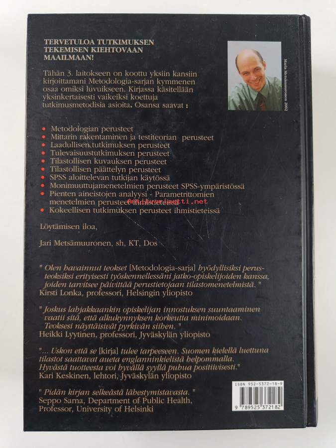 Asiasanat: käsikirjat, tutkimus, taloustieteet, luotettavuus, tulevaisuudentutkimus, laatu, tilastotiede, havainnointi, päättely, testaus, tilastot, kasvatustiede, tutkimusmenetelmät, tutkimustyö, toimintatutkimus, kvalitatiivinen tutkimus, metodologia, graafinen esitys, tieteellinen tieto, sosiaalitieteet, haastattelututkimus, todennäköisyys, tiedonhankinta, etnografia, tiedonlähteet, tutkimustulokset, tilastomenetelmät, oppaat (teokset), tietokoneohjelmat, jakaumat, ihmistieteet, analyysimenetelmät, monimuuttujamenetelmät, otanta, research, empiirinen tutkimus, kvantitatiivinen tutkimus, mittarit (mittaus), psykometriikka, pedagogik (vetenskaper), Science, SPSS, handböcker, faktorianalyysi, forskning, forskningsarbete, hypoteesit, Statistics, datorprogram, testning, aktionsforskning, Research methods, socialvetenskaper, forskningsmetoder, metodologi, Methods, mittausmenetelmät, mätmetoder, reliabiliteetti, validiteetti, research design, fenomenografia, grounded theory, korrelaatio, keskiarvot, regressioanalyysi, varianssianalyysi, frekvenssit, hajonta, statistik, guider (verk), etnografi, informationsanskaffning, vetenskaplig kunskap, framtidsforskning, kvantitativ forskning, statistik (data), statistik (vetenskaper), statistiska metoder, analysmetoder, psykometrik, ekonomiska vetenskaper, informationskällor, humanvetenskaper, sannolikhet, qualitative research, observerande, kvalitativ forskning, fördelningar, variansanalys, intervjuundersökning, sampling (statistik), slutledning, empirisk forskning, metodit, reliabilitet, grafisk framställning, mätare (mätning), regressionsanalys, multivariata metoder, tillförlitlighet, hypoteser, grundad teori, forskningsresultat, faktoranalys, frekvenser, fenomenografi, models, statistical, validitet, korrelation, medelvärden, spridning (matematik och statistik)
