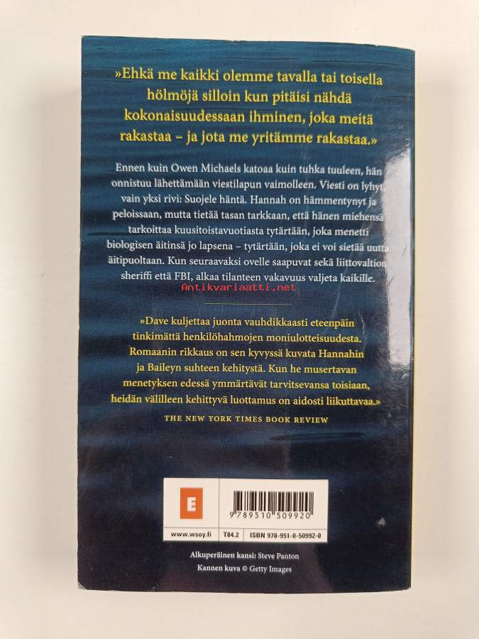 Alkuteos: The Last Thing He Told MeAsiasanat: aviopuolisot, tyttäret, äitipuolet, katoaminen, menneisyys, salaisuudet