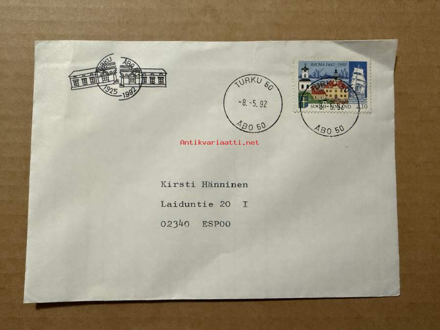 8.5.1992 kirje / postileima Turku
