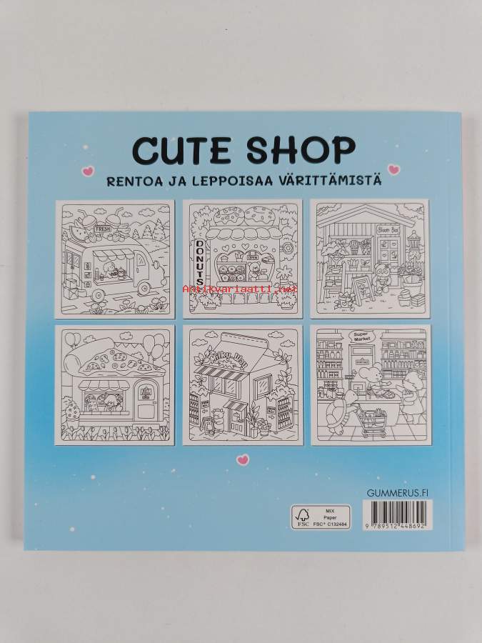 Alkuteos: Cute Shop - Super Cute Coloring BookAsiasanat: aikuisten värityskirjat, Cozy coloring, tiktok-ilmiö