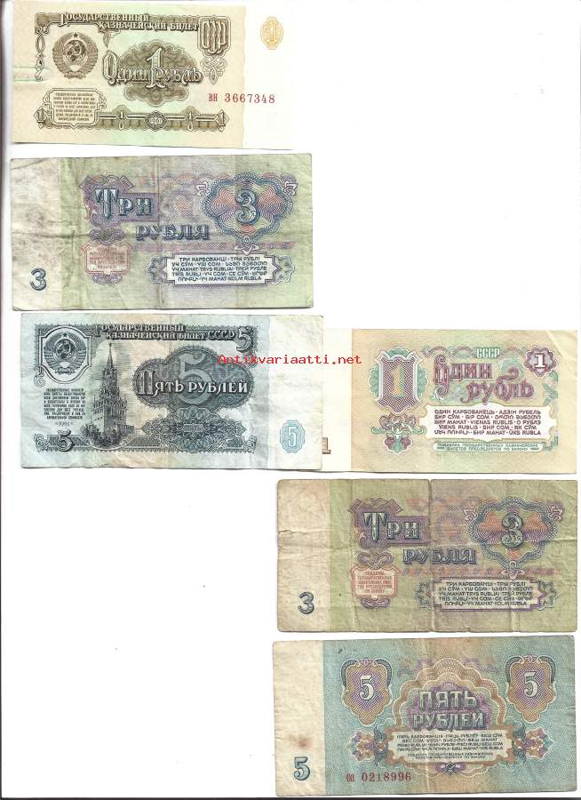 Venäjä Neuvostoliitto 1, 3 ja 5 ruplaa 1961 seteli 3 eril