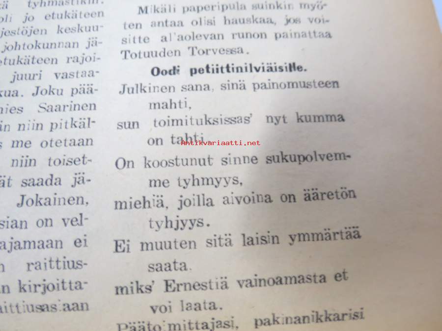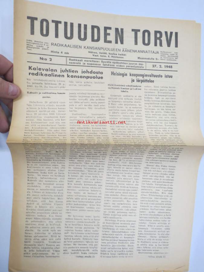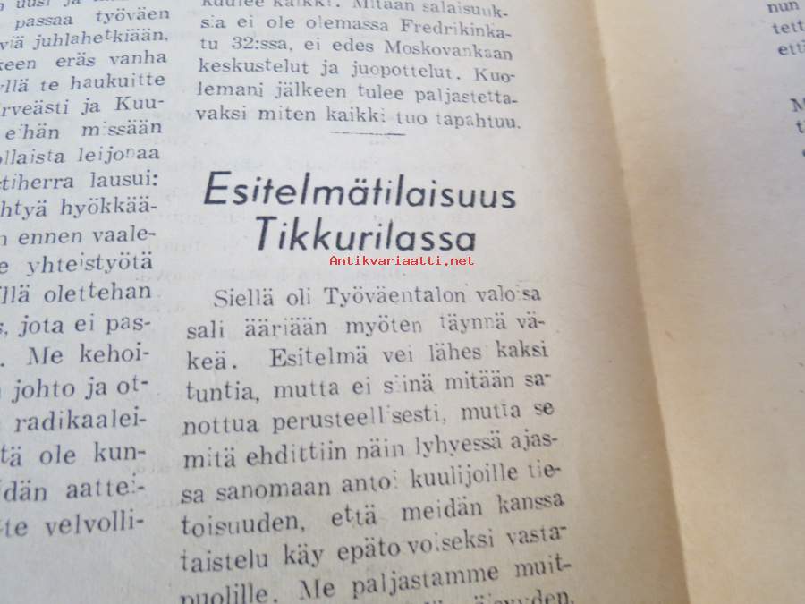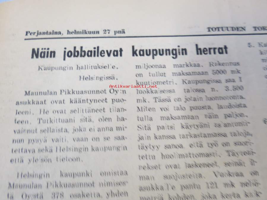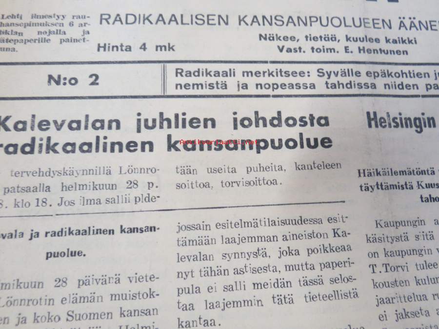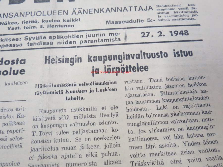 Helsingin kaupunginvaltuusto istuu ja lörpöttelee, Kalevala ja Radikaalinen puolue, Näin jobbailevat kaupungin herrat, ym. Päätoimittaja Ernesti Hentunen, puolueensa äänenkannattaja, sisältää hyvinkin yksityiskohtaisia ja avoimia paljastuksia sekä syytöksiä yksityishenkilöistäkin.