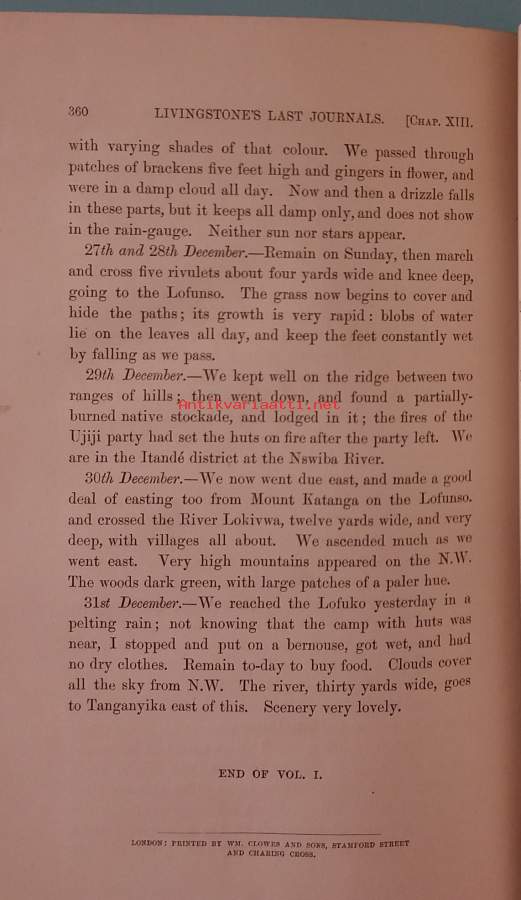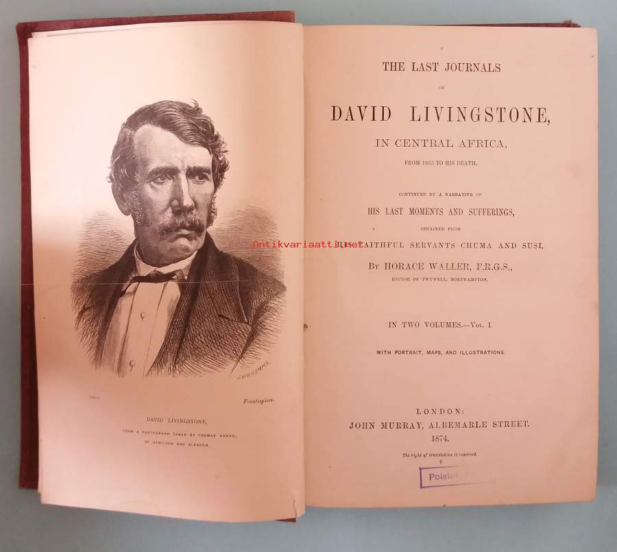 Continued by a Narrative of His Last Moments and Sufferings, Obtained from His Faithful Servants Chuma and Susi. By Horace Waller. 1. laitos, Vol. I, alkuperäisessä kustantajansidoksessa. Kartta puutuu. Yhdessä kuvassa pieni repeämä, muuten mielestäni ok. Kuvitettu. Dimensiot 23 ¤ 15 cm.