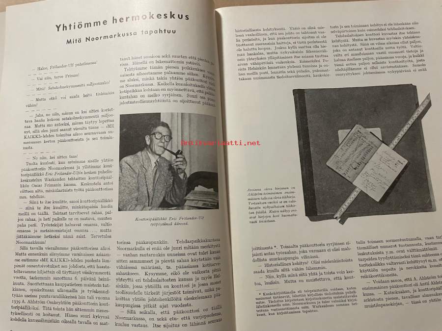 Me kaikki A. Ahlström Osakeyhtiön henkilökuntalehti 1958 nr 3, pientä juttua puhelimistä, mietteitä harjoittelustani Suomessa Karhulan tehtailla (Karl