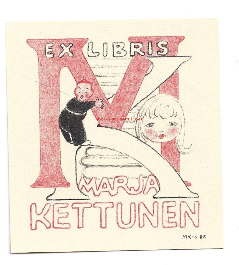Marja-Liisa Pitkäranta, vanerikortti; Mitä suunnittelee pikku peikko. Puutyö Harri Marjamaa. Koko 12x17cm. kortin n:o 1426/e. Kulkematon. Pitkäranta