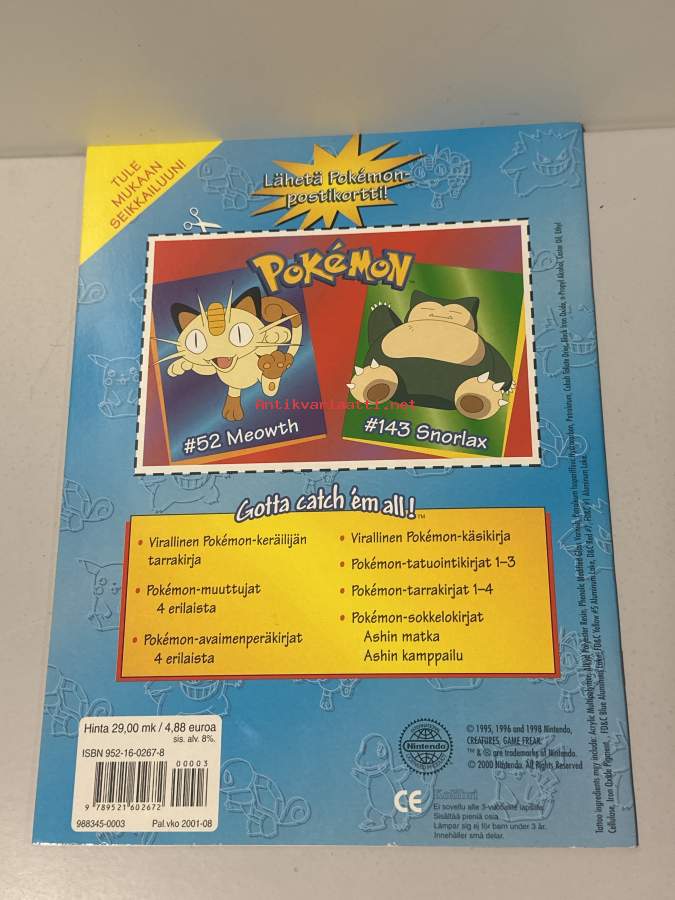 Pokémon tatuointikirja 2000 no 3 tatuoinnit mukana