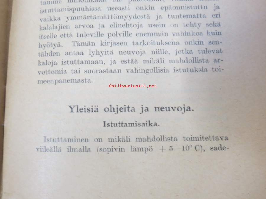 Några råd och anvisningar vid plantering af fisk -neuvoja kalojen istutukseen