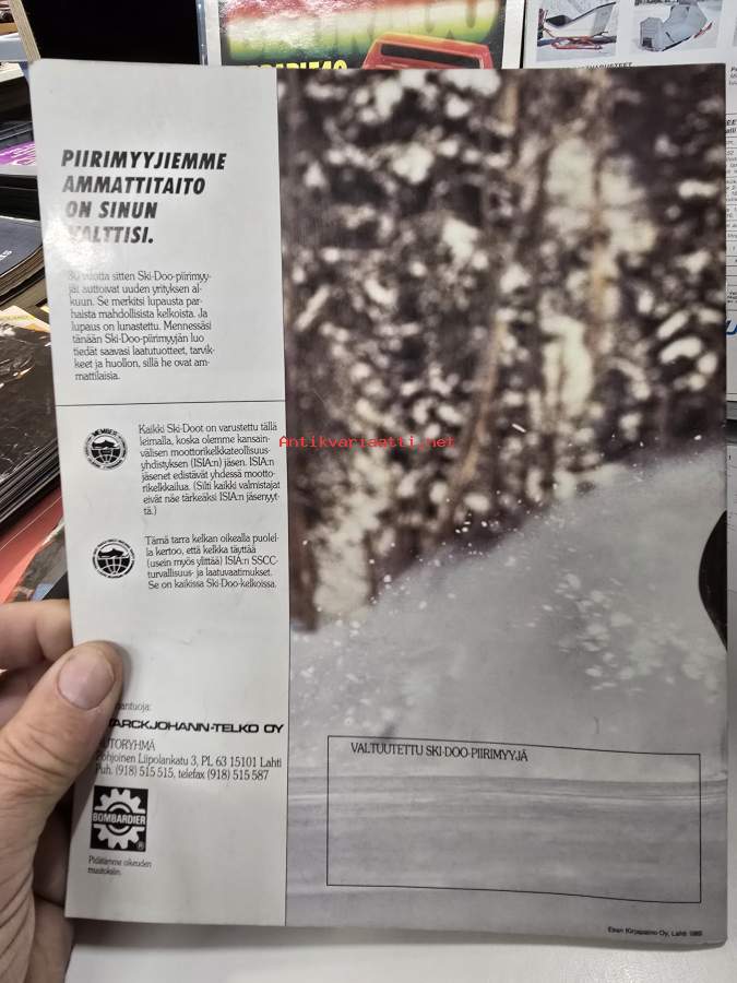 Bombardier Ski-Doo moottorikelkka / moottorikelkkailun turvallisuus / Kalevi Vehkonen / Talja -opas / esite