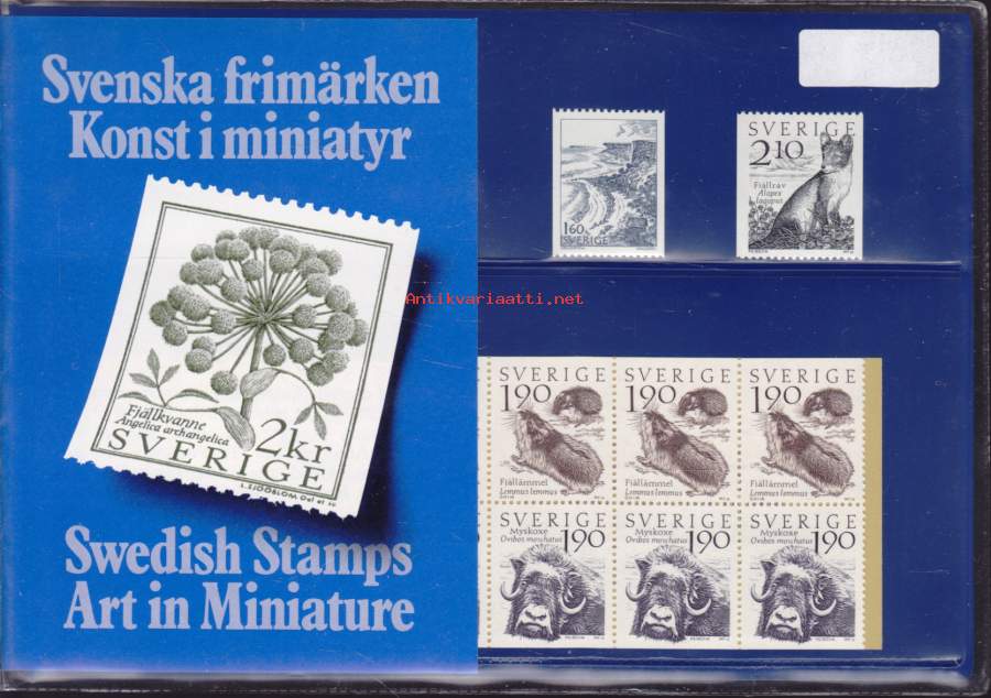 Postimerkkipaketti Ruotsi - Swedish Stamps - Art in Miniature. Ruotsin Postin presentsats 1051.01 vuodelta 1984 ** postituore. 9 kpl + vihko 10kpl= 19 kpl. MINT!