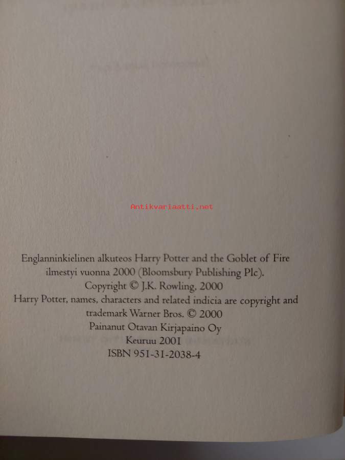 Harry Potter and the Goblet of Fire - Harry Potter ja liekehtivä pikari. (Fantasia, Printed in Great Britain)
