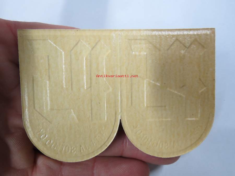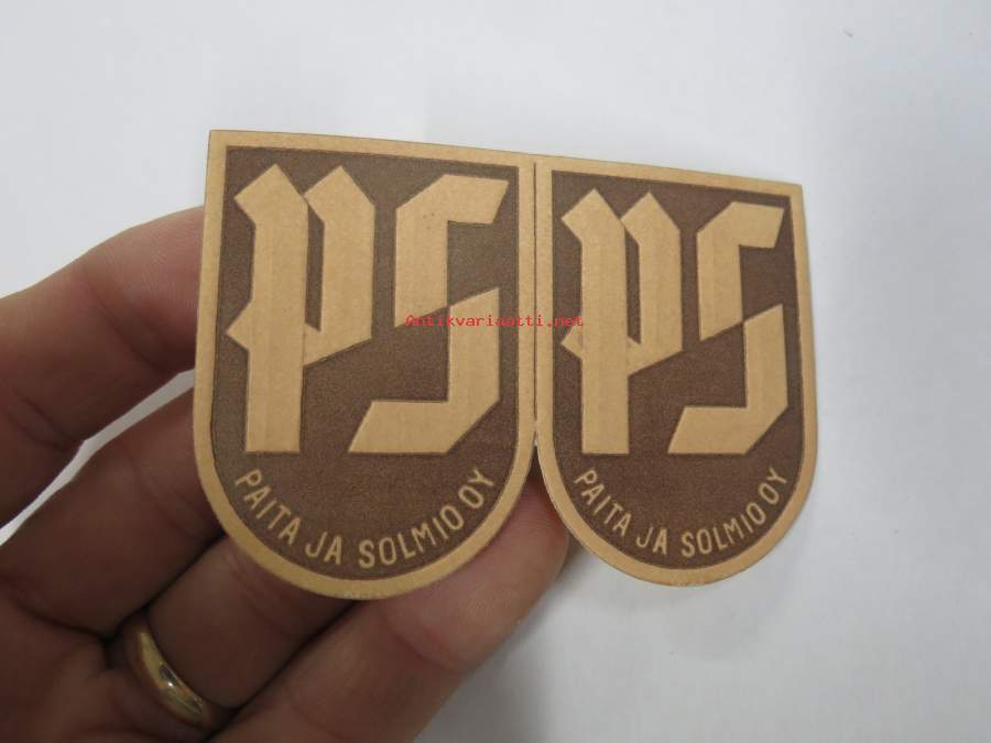 PS Paita ja Solmio Oy -hintalappu / tuotetietolappu, merkin valmistaja Herman Mattsson Korkokuvapaino & Pussitehdas, Vaasa