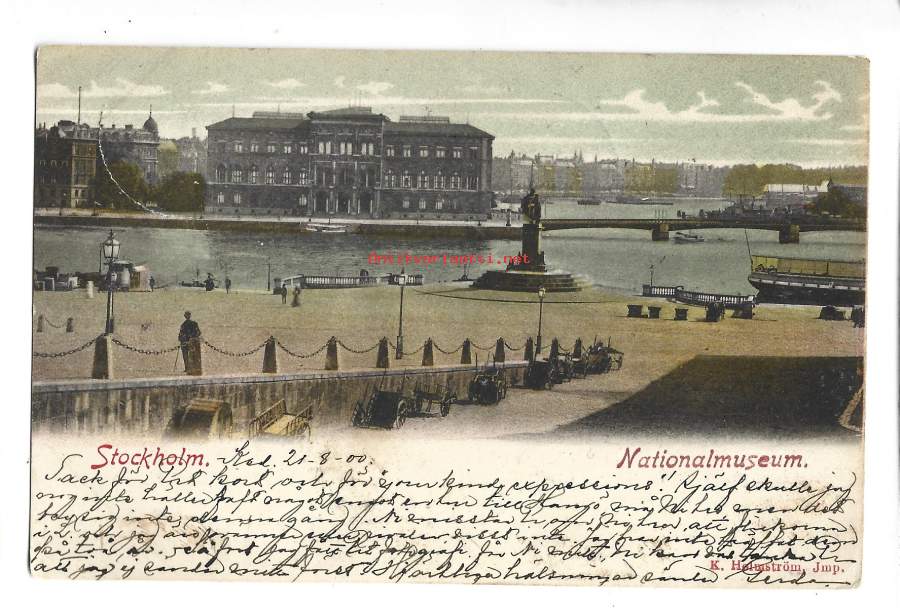 Tukholma StockholmNationalmuseum -postikortti paikkakuntapostikortti kulkenut 1900 merkki pois