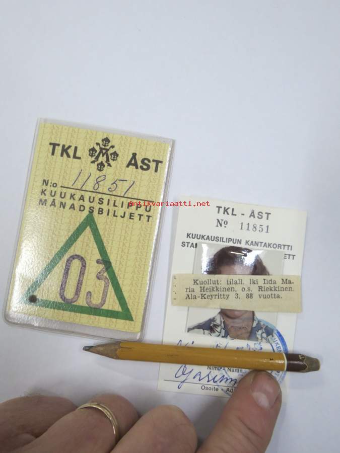 Turun kaupungin liikennelaitos kuukausilippu nr 11851 + kantakortti -matkalippu